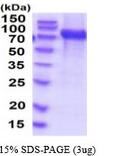 | Molecular Mass : | 75.6kDa (685aa) 70-100KDa (SDS-PAGE under reducing conditions) |