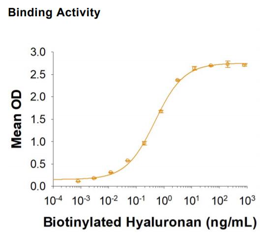 | Bio-activity : | Measured by its binding ability in a functional ELISA. When Recombinant Human Versican Isoform V3 is coated at 0.25 μg/mL, 100 μL/well, Biotinylated Hyalurinan binds with an ED50 of 0.25-1.5 ng/mL. |