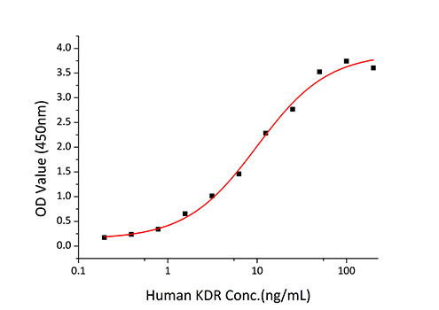 | Bio-activity : | 1.Measured by its binding ability in a functional ELISA. Immobilized Human VEGF121 at 2 μg/mL (100 μL/well) can bind Human KDR with a linear range of 0.2-10 ng/mL. 2.Measured in a cell proliferation assay using human umbilical vein endothelial cells (HUVEC). The ED50 for this effect is typically 0.017-0.068 ng/mL. |