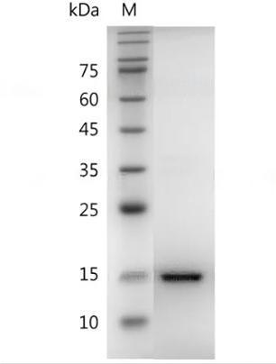 Molecular Mass : | The protein has a calculated MW of 15.00 kDa. The protein migrates as 15 kDa under reducing condition (SDS-PAGE analysis). |