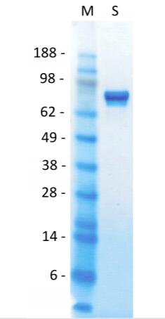 | Molecular Mass : | Calculated molecular mass (kDa): 78.7 Estimated by SDS-PAGE under reducing condition (kDa): 80-85 |
