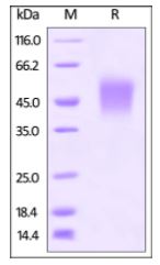 | Molecular Mass : | The recombinant mouse CD80 consists of 219 amino acids and has a predicted molecular mass of 25.1 kDa. In SDS-PAGE under reducing conditions, the apparent molecular mass of rm CD80 is approximately 45-55 kDa due to glycosylation. |