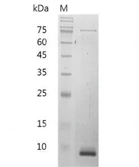 Molecular Mass : | The protein has a calculated MW of 9.47 kDa. The protein migrates as 11-17 kDa under reducing condition (SDS-PAGE analysis). |
