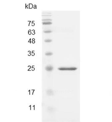 | Molecular Mass : | The protein has a calculated MW of 23.84 kDa. The protein migrates about 25 kDa under reducing condition (SDS-PAGE analysis). |