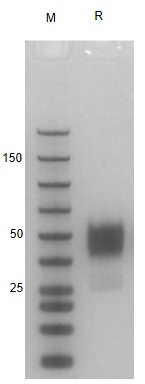 | Molecular Mass : | The protein has a calculated MW of 24 kDa.The reducing (R) heterodimer protein migrates as 35-70 kDa due to glycosylation |