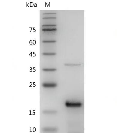 | Molecular Mass : | The protein has a calculated MW of 17.2 kDa. The protein migrates as 19 kDa under reducing condition (SDS-PAGE analysis). |
