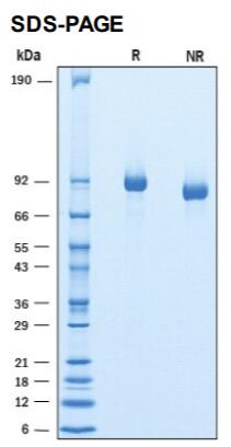 Predicted Molecular Mass: 75.8 kDa SDS-PAGE: 85-95 kDa, reducing conditions |