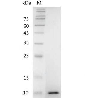 | Molecular Mass : | The protein has a calculated MW of 8.20 kDa. The protein migrates about 11 kDa under reducing condition (SDS-PAGE analysis). |
