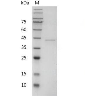 Molecular Mass : | The protein has a calculated MW of 36.60 kDa. The protein migrates as 35-48 kDa under reducing condition (SDS-PAGE analysis). |