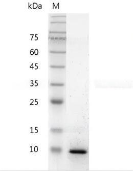 Molecular Mass : | The protein has a calculated MW of 13.06 kDa. The protein migrates about 11 kDa under reducing condition (SDS-PAGE analysis). |