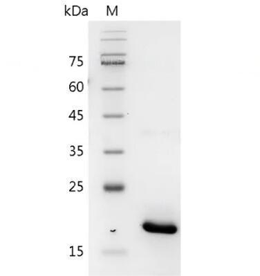 | Molecular Mass : | The protein has a calculated MW of 18.99 kDa. The protein migrates as 17-25 kDa under reducing condition (SDS-PAGE analysis). |