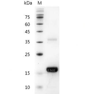 Molecular Mass : | The protein has a calculated MW of 18.2 kDa. The protein migrates as 18 kDa under reducing condition (SDS-PAGE analysis). |