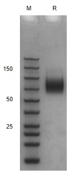 Molecular Mass : | The protein has a calculated MW of 41kDa.The reducing (R) heterodimer protein migrates as 60-100 kDa due to glycosylation |