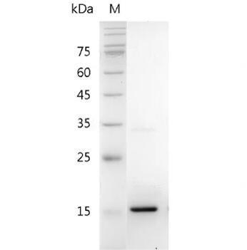 | Molecular Mass : | The protein has a calculated MW of 18.94 kDa. The protein migrates about 17 kDa under reducing condition (SDS-PAGE analysis). |