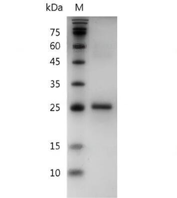 Molecular Mass : | The protein has a calculated MW of 25.52 kDa. The protein migrates about 25 kDa under reducing condition (SDS-PAGE analysis). |