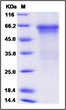 | Molecular Mass : | The recombinant mouse HVEM/Fc is a disulfide-linked homodimeric Protein after removal of the signal peptide. The reduced monomer consists of 415 amino acids and predicts a molecular mass of 46.4 kDa. By SDS-PAGE under reducing conditions, the apparent molecular mass of rmHVEM/Fc monomer is approximately 65 kDa due to the glycosylation. |