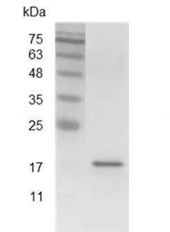 | Molecular Mass : | The protein has a calculated MW of 18.14 kDa. The protein migrates as 17-25 kDa under reducing condition (SDS-PAGE analysis). |