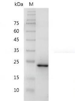 Molecular Mass : | The protein has a calculated MW of 23.9 kDa. The protein migrates as 24 kDa under reducing condition (SDS-PAGE analysis). |