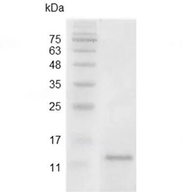 | Molecular Mass : | The protein has a calculated MW of 14.06 kDa. The protein migrates as 11-17 kDa under reducing condition (SDS-PAGE analysis). |