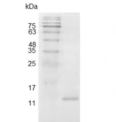 Molecular Mass : | The protein has a calculated MW of 13.5 kDa. The protein migrates as 15 kDa under reducing condition (SDS-PAGE analysis). |
