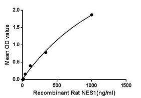 Nucb2 (Nucleobindin-2), a calcium-binding protein, is further cleaved into NES1 (Nesfatin-1). NES1 is an anorexigenic peptide and seems to participate in hypothalamic pathways regulating food intake and energy homeostasis, acting in a leptin-independent manner. GADD45A (Growth arrest and DNA damage-inducible protein GADD45 alpha) has been identified as an interactor of Nucb2. Besides, Growth Arrest And DNA Damage Inducible Protein Beta (GADD45b) has been identified as an interactor of NES1, thus a binding ELISA assay was conducted to detect the interaction of recombinant rat NES1 and recombinant rat GADD45b. Briefly, NES1 were diluted serially in PBS, with 0.01% BSA (pH 7.4). Duplicate samples of 100μL were then transferred to GADD45b-coated microtiter wells and incubated for 2h at 37°C. Wells were washed with PBST and incubated for 1h with anti-NES1 pAb, then aspirated and washed 3 times. After incubation with HRP labelled secondary antibody, wells were aspirated and washed 3 times. With the addition of substrate solution, wells were incubated 15-25 minutes at 37°C. Finally, add 50µL stop solution to the wells and read at 450nm immediately. The binding activity of NES1 and GADD45b was shown, and this effect was in a dose dependent manner. |