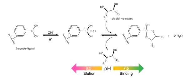 | Product Overview : | Boronate PMMA Affinity Resin is based on a homogeneous hydrophilic monodisperse polymethacrylate. 3-aminophenylboric acid is surface bonded with fillers for the purification or analysis of compounds with cis-diol groups, such as glycoproteins, nucleic acids and sugars. The particle size of the filler is 60 μm, good pressure resistance, good physical and chemical stability, and the surface of the filler is highly hydrophilic, avoiding non-specific adsorption with biological samples. The dextran exclusion limit of fillers is about 2x106, and the exclusion limit of spherical proteins is about 5x106, which can be used for industrial purification. |