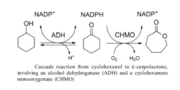 CHMO (Cyclohexanone monooxygenase): a Baeyer Villiger monooxygenase (BVMO) with cyclohexanone as the substrate, can oxidize cyclohexanone to cyclohexanol using oxygen.