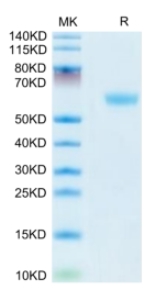 Human GITR Ligand, Fc Tag on SDS-PAGE under reducing (R) condition.