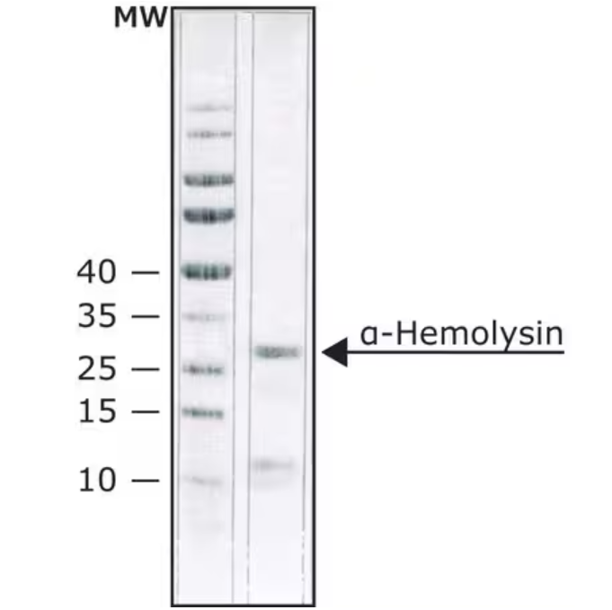 4. α -hemolysin was used in a study to test the efflux pump and hemolysin activity of Escherichia coli in dairy products. It is also used to test its adaptability to benzalkonium chloride and the effect of ciprofloxacin on biofilm formation. |