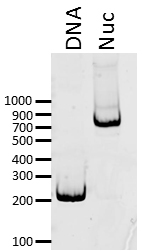 Form : | Purified recombinant mononucleosomes in 10mM Tris-HCl pH 7.5, 25 mM NaCl, 1 mM EDTA, 2 mM DTT, 20% glycerol. |