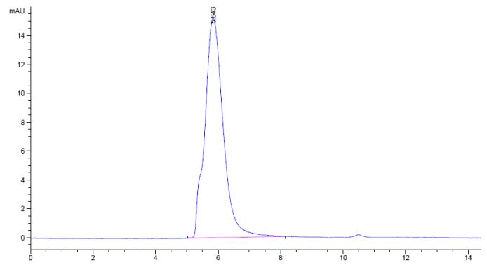The protein has a predicted MW of 77.9 kDa. Due to glycosylation, the protein migrates to 110-120 kDa based on Bis-Tris PAGE result. |