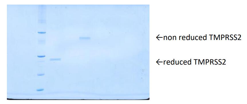 Recombinant human TMPRSS2 cleaves the synthetic substrate Z-Gly-Gly-Arg-AMC with high efficiency (kcat/KM=2×10^5 M-1s-1). Its natural inhibitor HAI-2 completely blocks the TMPRSS2 activity at 1:1 molar ratio. |