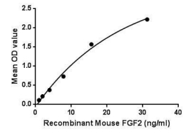 | Bio-activity : | Basic fibroblast growth factor (FGF2), also known as bFGF, FGF-β is a member of a large family of structurally related heparin-binding proteins (the FGFs) involved in the regulation of cell proliferation, growth and differentiation. It involved in many biological processes including angiogenesis, embryonic development and wound healing. Additionally, FGF2 is a critical component of human embryonic stem cell culture medium. Besides, Caspase 1 (CASP1) has been identified as an interactor of FGF2, thus a binding ELISA assay was conducted to detect the interaction of recombinant mouse FGF2 and recombinant mouse CASP1. Briefly, FGF2 were diluted serially in PBS, with 0.01% BSA (pH 7.4). Duplicate samples of 100ul were then transferred to CASP1-coated microtiter wells and incubated for 2h at 37°C. Wells were washed with PBST and incubated for 1h with anti-FGF2 pAb, then aspirated and washed 3 times. After incubation with HRP labelled secondary antibody, wells were aspirated and washed 3 times. With the addition of substrate solution, wells were incubated 15-25 minutes at 37°C. Finally, add 50µL stop solution to the wells and read at 450nm immediately. The binding activity of FGF2 and CASP1 was shown, and this effect was in a dose dependent manner. |