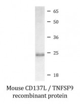 The protein encoded by this gene is a cytokine that belongs to the tumor necrosis factor (TNF) ligand family. This transmembrane cytokine is a bidirectional signal transducer that acts as a ligand for TNFRSF9/4-1BB, which is a costimulatory receptor molecule in T lymphocytes. This cytokine and its receptor are involved in the antigen presentation process and in the generation of cytotoxic T cells. The receptor TNFRSF9/4-1BB is absent from resting T lymphocytes but rapidly expressed upon antigenic stimulation. The ligand encoded by this gene, TNFSF9/4-1BBL, has been shown to reactivate anergic T lymphocytes in addition to promoting T lymphocyte proliferation. This cytokine has also been shown to be required for the optimal CD8 responses in CD8 T cells. This cytokine is expressed in carcinoma cell lines, and is thought to be involved in T cell-tumor cell interaction.[provided by RefSeq, Oct 2008] |