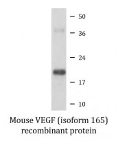 This gene is a member of the PDGF/VEGF growth factor family and encodes a protein that is often found as a disulfide linked homodimer. This protein is a glycosylated mitogen that specifically acts on endothelial cells and has various effects, including mediating increased vascular permeability, inducing angiogenesis, vasculogenesis and endothelial cell growth, promoting cell migration, and inhibiting apoptosis. Elevated levels of this protein is linked to POEMS syndrome, also known as Crow-Fukase syndrome. Mutations in this gene have been associated with proliferative and nonproliferative diabetic retinopathy. Alternatively spliced transcript variants, encoding either freely secreted or cell-associated isoforms, have been characterized. There is also evidence for the use of non-AUG (CUG) translation initiation sites upstream of, and in-frame with the first AUG, leading to additional isoforms. [provided by RefSeq, Jul 2008] |