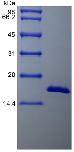 Approximately 16.5 kDa, a single non-glycosylated polypeptide chain containing 147 amino acids. |