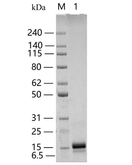 Theoretical Molecular Weight: 12 kDa Apparent Molecular Weight: 10-18 kDa, on SDS-PAGE under reducing conditions. |