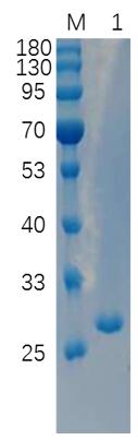 The purified protein was Lyophilized from sterile 20 mM Tris-HCl buffer (pH 8.0) containing 0.2 M NaCl, 2 mM DTT. 5 % trehalose and 5 % mannitol are added as protectants before lyophilization. |