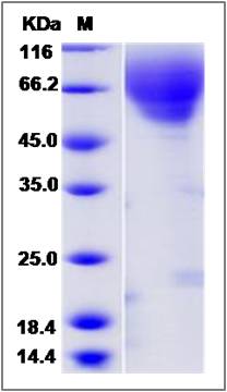 Molecular Mass : | The recombinant canine CX3CL1 is a disulfide-linked homodimer. The reduced monomer comprises 362 amino acids and has a predicted molecular mass of 38.2 kDa. The apparent molecular mass of the protein is approximately 64-69 kDa in SDS-PAGE under reducing c |