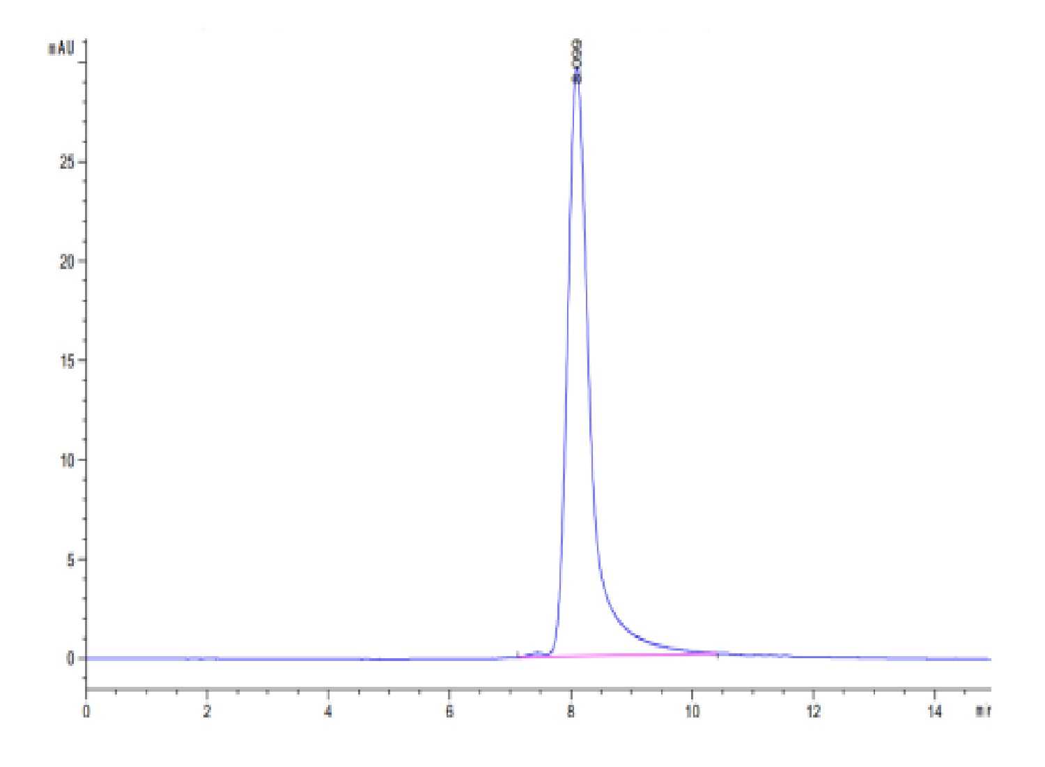 | Molecular Mass : | The protein has a predicted MW of 96.19 kDa. Due to glycosylation, the protein migrates to 110-130 kDa based on Tris-Bis PAGE result. |