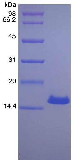 Approximately 16.9 kDa, a single non-glycosylated polypeptide chain containing 143 amino acids. |