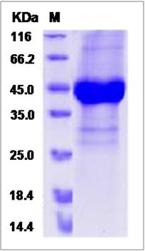 | Product Overview : | Recombinant Canine NOV (XP_532317.3) (Met1-Met353), fused with a C-terminal polyhistidine tag, was produced in Human Cells. |