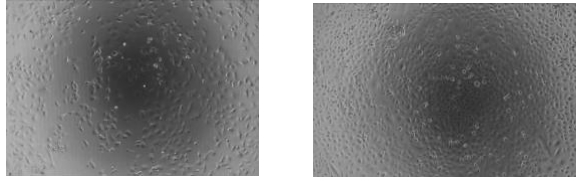 Transforming growth factor beta 1 (TGF-β1) is a polypeptide member of the transforming growth factor beta superfamily of cytokines. It is a secreted protein that performs many cellular functions, including the control of cell growth, cell proliferation, cell differentiation, and apoptosis. It is reported that TGF-β1 can stimulate cell transformation by Smad signal transduction .To test the bioactivity of TGF-β1, A549 cells were seeded into 24-well plate at a density of 1x10^6 cells/mL, and allowed to attach overnight before treated with certain concentrations of TGF-β1. After 48 hours, the morphological changes of A549 were observed by inverted microscope. The results was shown. A549 cells usually have a cobblestone epithelial morphology and corresponding growth pattern. When stimulated with TGF-β1, the cells were similar with fibroblasts, the connections between cells became loose. |
