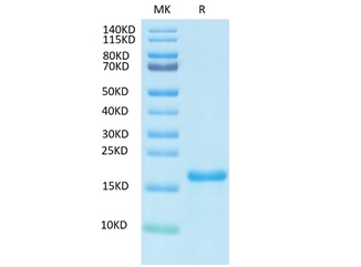 | Molecular Mass : | The protein has a predicted MW of 16.3kDa.Due to glycosylation, the protein migrates to 15-20 KDa based on Bis-Tris PAGE result. |