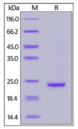 Molecular Mass : | The protein has a calculated MW of 23.9 kDa. The protein migrates as 22-25 kDa under reducing (R) condition (SDS-PAGE) due to glycosylation. |