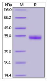 | Molecular Mass : | The protein has a calculated MW of 27.0 kDa. The protein migrates as 33-35 kDa under reducing (R) condition (SDS-PAGE) due to glycosylation. |