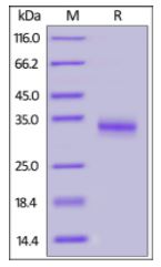 | Molecular Mass : | The protein has a calculated MW of 27.0 kDa. The protein migrates as 33-35 kDa under reducing (R) condition (SDS-PAGE) due to glycosylation. |