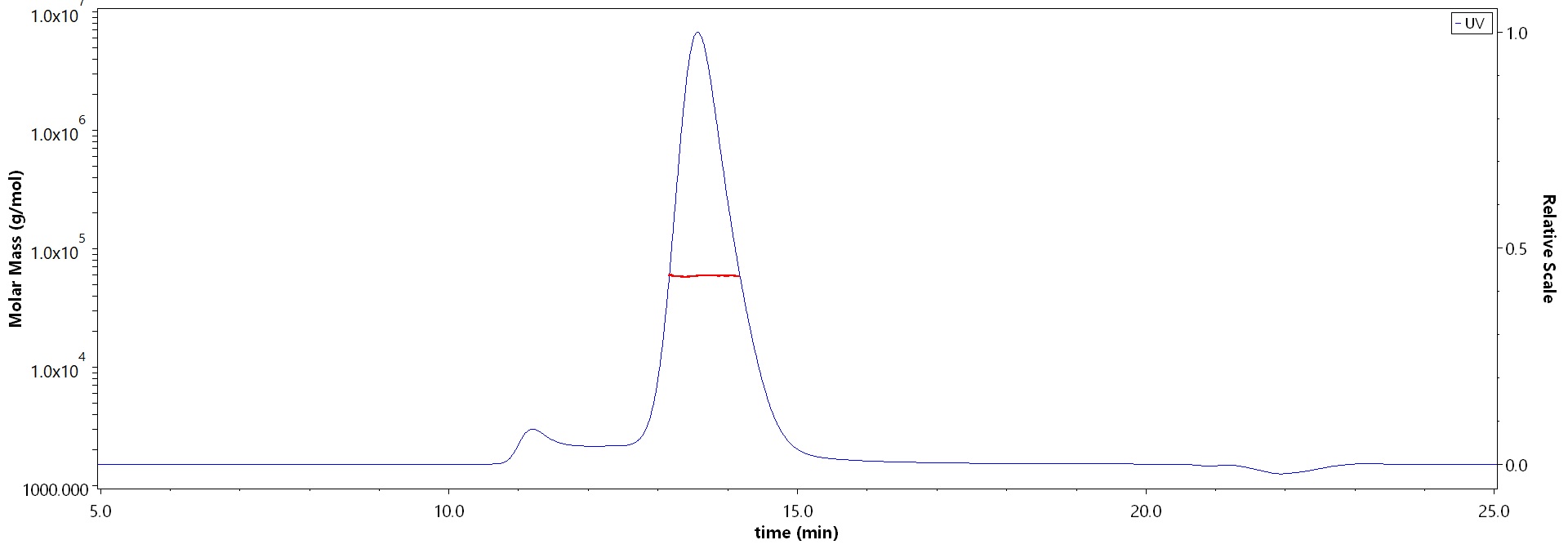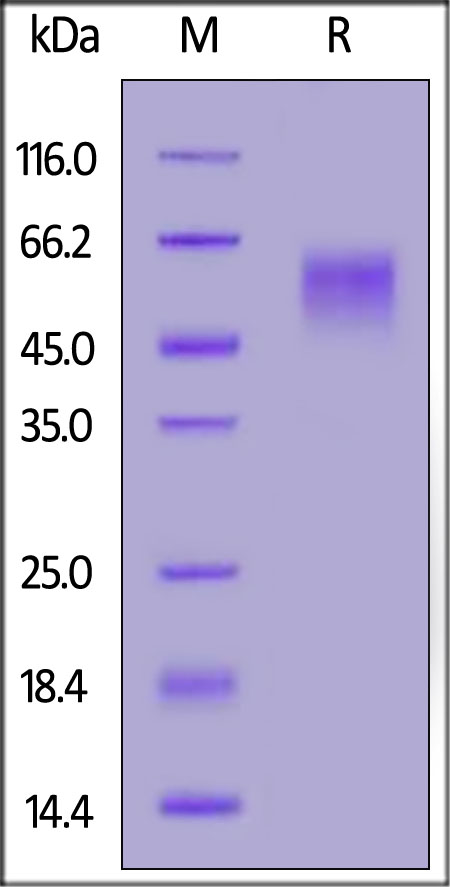 | Molecular Mass : | The protein has a calculated MW of 34.9 kDa. The protein migrates as 45-66 kDa under reducing (R) condition (SDS-PAGE) due to glycosylation. |