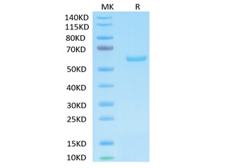 | Molecular Mass : | The protein has a predicted MW of 51.7kDa. Due to glycosylation, the protein migrates to 60-62KDa based on Bis-Tris PAGE result. |