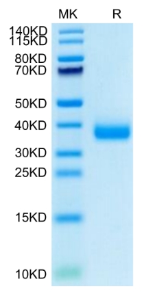 | Molecular Mass : | The protein has a predicted MW of 26.2 kDa. Due to glycosylation, the protein migrates to 35-40 kDa based on Tris-Bis PAGE result. |